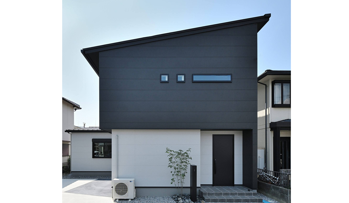 【美しく整える、シンプルでかっこいい生活を目指したモデルハウス】 モノトーンカラーに留まらず、ラインにもこだわった ソトもナカも、感覚に響くデザインがここにあります。