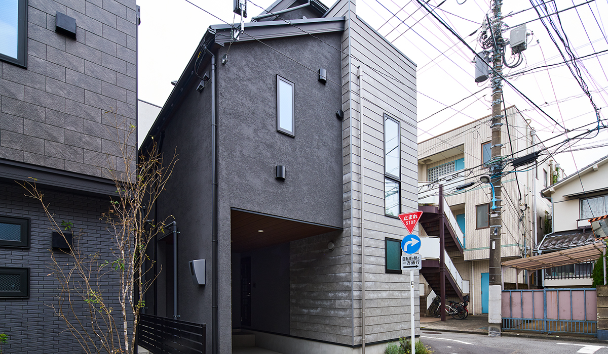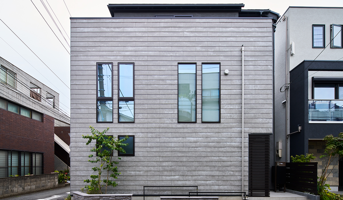 限られた敷地条件の中で、立体構成と素材の使い分けにより奥行きと広がりを感じる外観を実現しました。外壁にはSOLIDOを採用し、光の当たり方によって陰影が変化する表情をデザイン。シンプルでありながら、時間とともに味わいが深まる建築を目指しました。