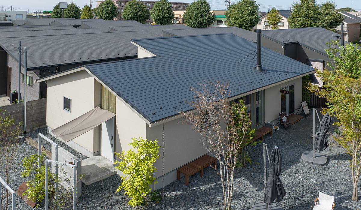 四角い箱の中に可変性のあるユニットを組み合わせ『経済性・多様性・柔軟性』と『楽しさ・満足感・安全性』の両立を図った今の時代に求められる住宅のご提案。テーマは庭がある家。活用しきれない外庭ではなく、庭を住宅の内部に取り込み完全プライベート空間として構築しました。