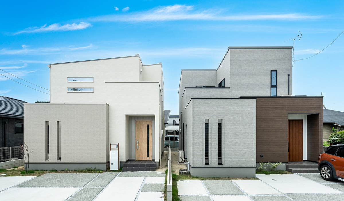 ナチュラルモダンスタイルとジャパンディスタイルの物件です。 雰囲気は違いつつ、上品な印象の2棟に仕上がりました。