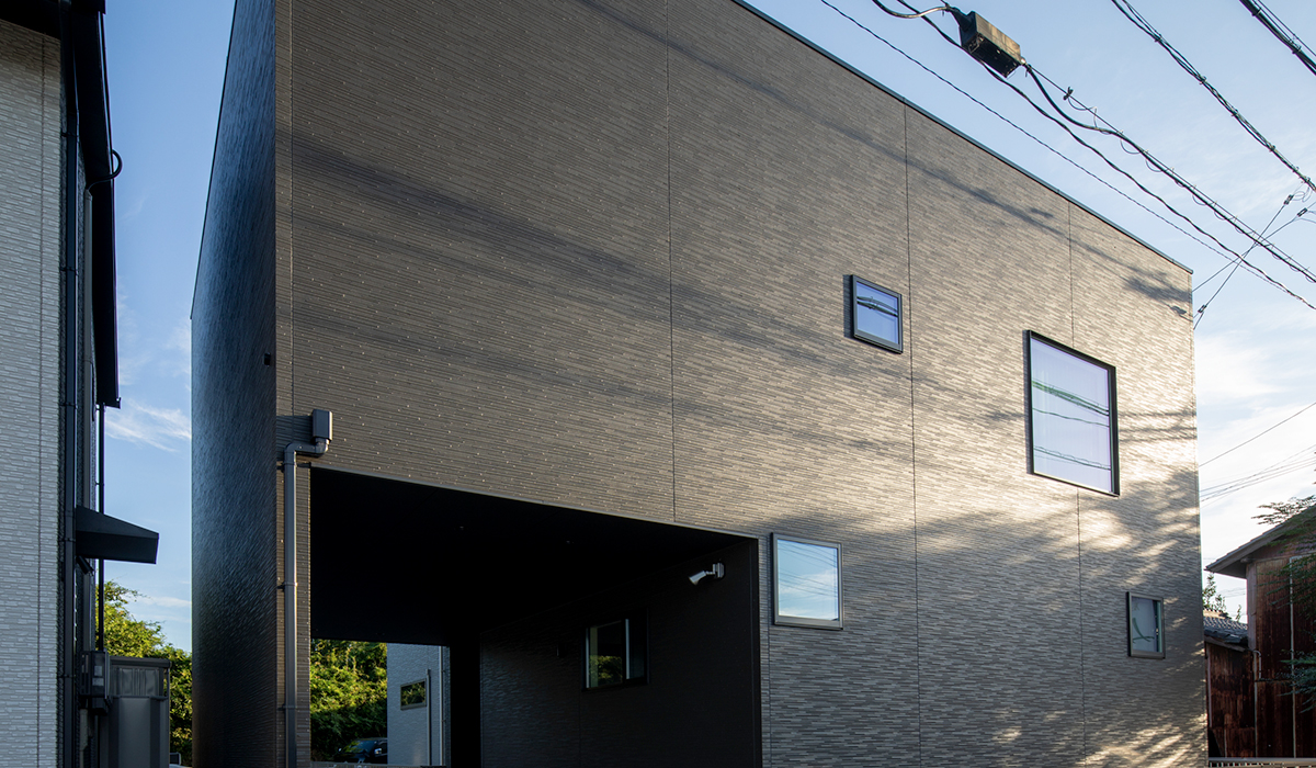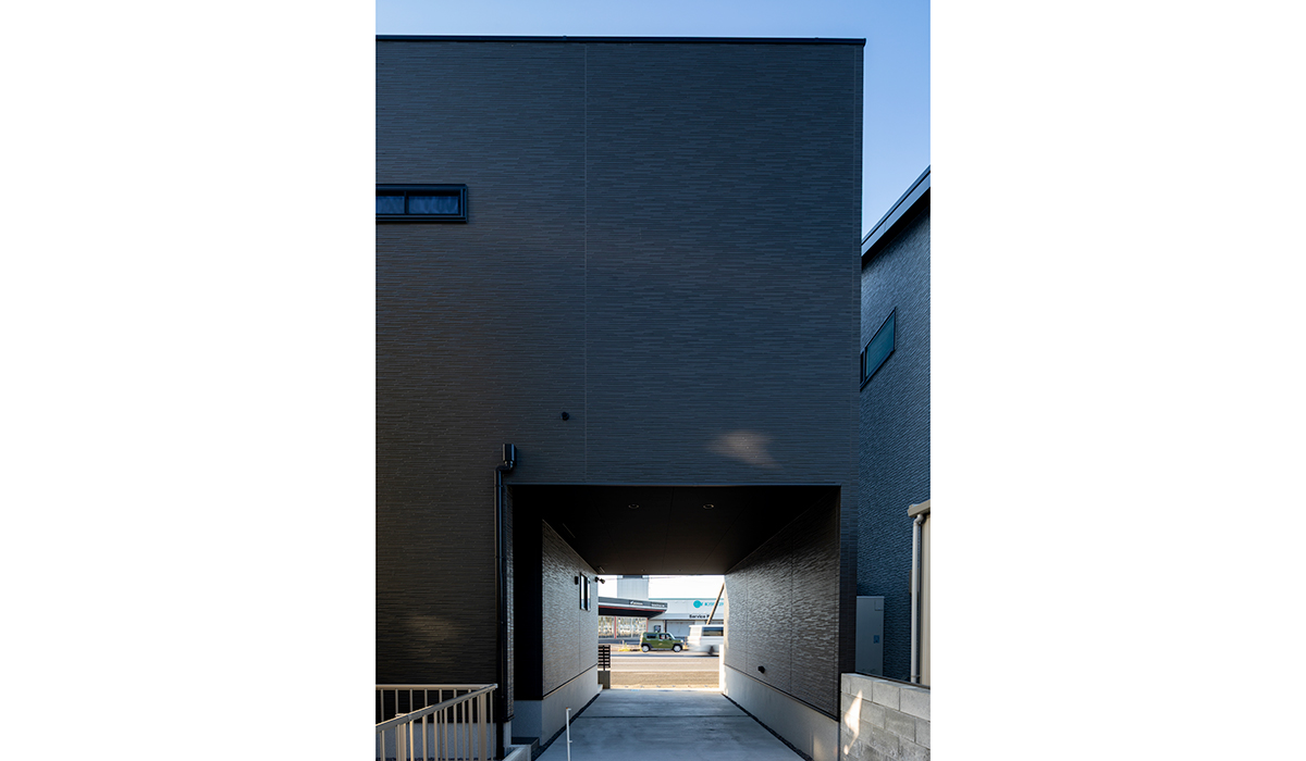 メインとなるファサードにフードやダクトなどを避け、サッシや照明など自然なバランスで配置しながらも直線的に揃ったラインが美しく見えるようこだわり抜いた「開放的な空間と高級感のある近代的なデザインが特徴的な外観」。