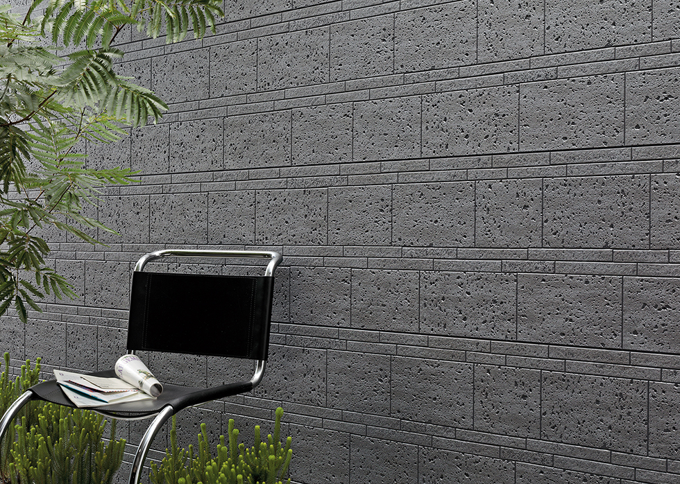 大小の石ピースが織りなす洗練されたコントラスト。トレンドのパネル感のある外壁との組み合わせがおすすめ。