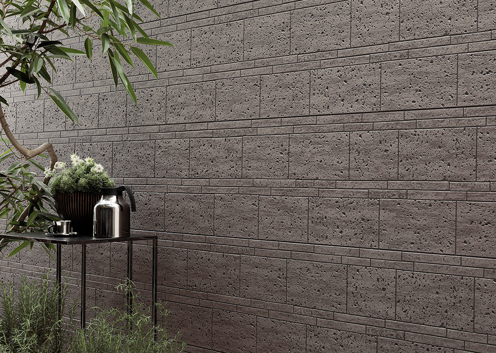 大小の石ピースが織りなす洗練されたコントラスト。トレンドのパネル感のある外壁との組み合わせがおすすめ。