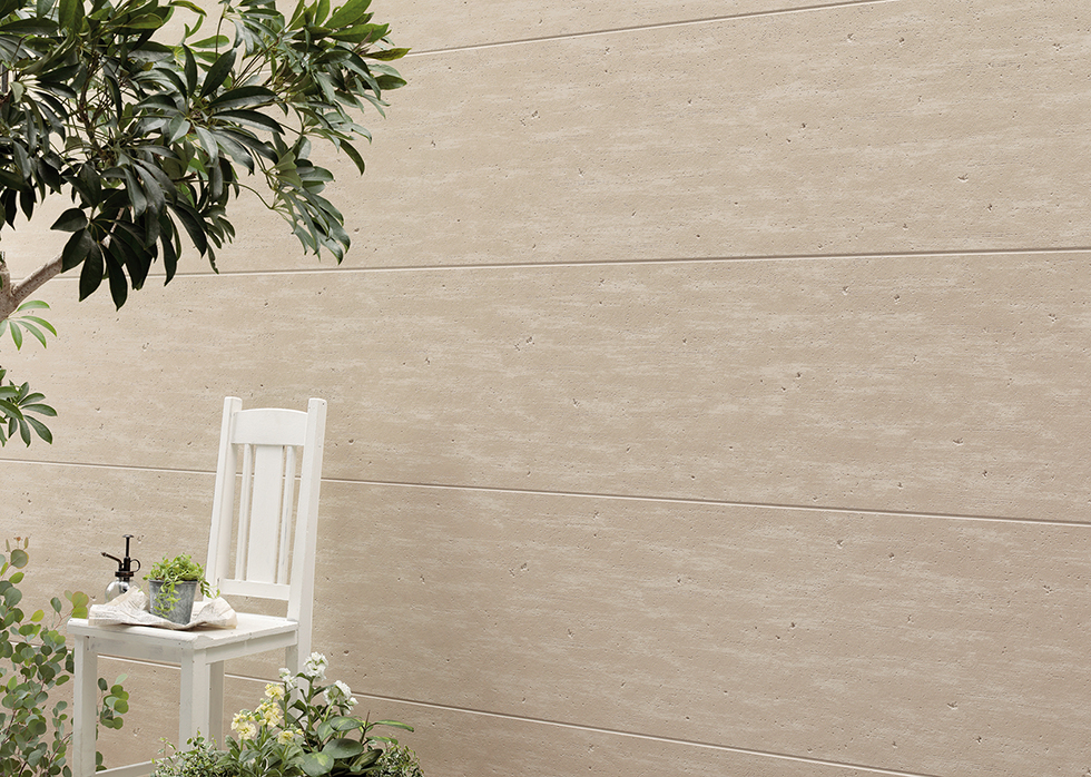 コンクリート調のパネルに自然な風合いをプラス。モダンな表情で幅広い外観におすすめ。