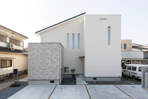 外観をセンスよく仕上げるには色や素材だけでなく、外壁の組合せ方にも工夫が必要です。