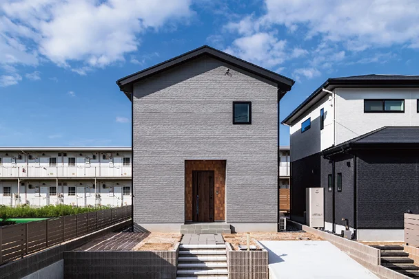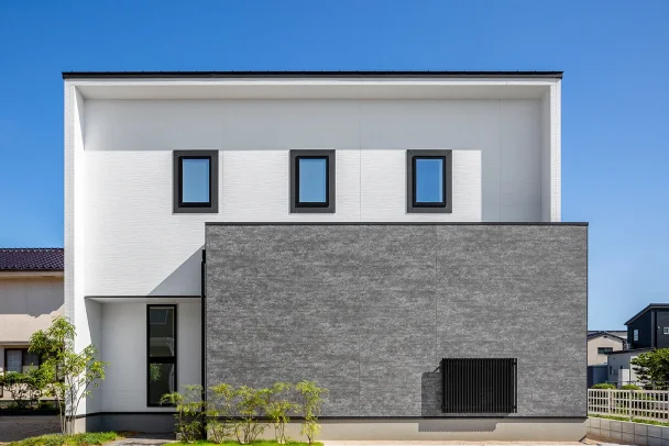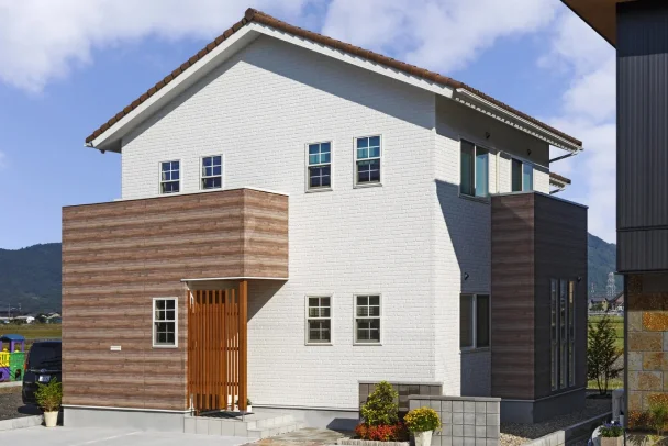 建物の左右で分ける、玄関まわりだけを切り替えるなど、家のカタチに合わせてベースとアクセントを使い分けることで、自然で立体感のあるデザインに仕上がります。