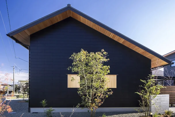 シンプルな家の形で前後に組合せると、水平ラインが強調されて安定感のある印象に。