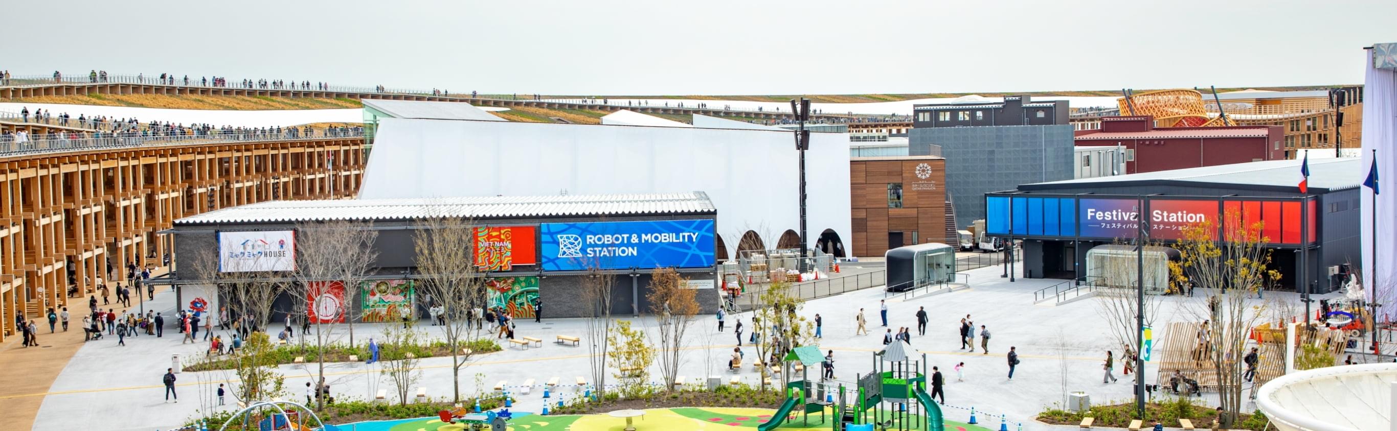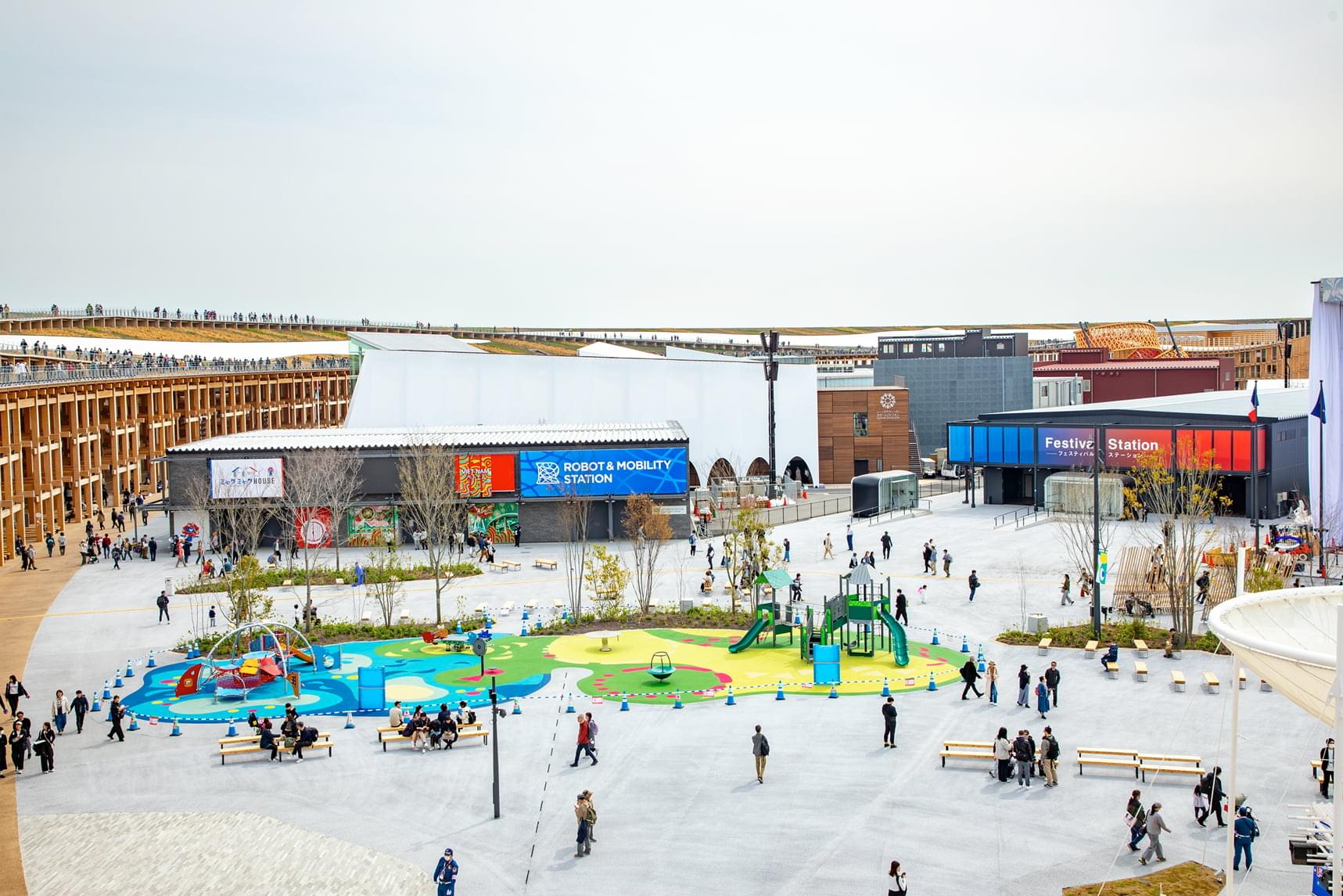 ケイミューの外装材は、50以上のパビリオンや共用施設に採用されています