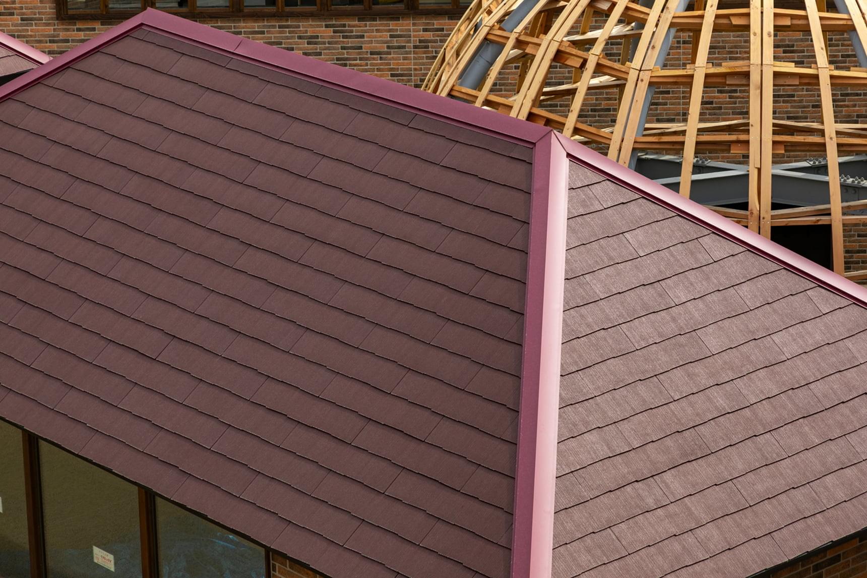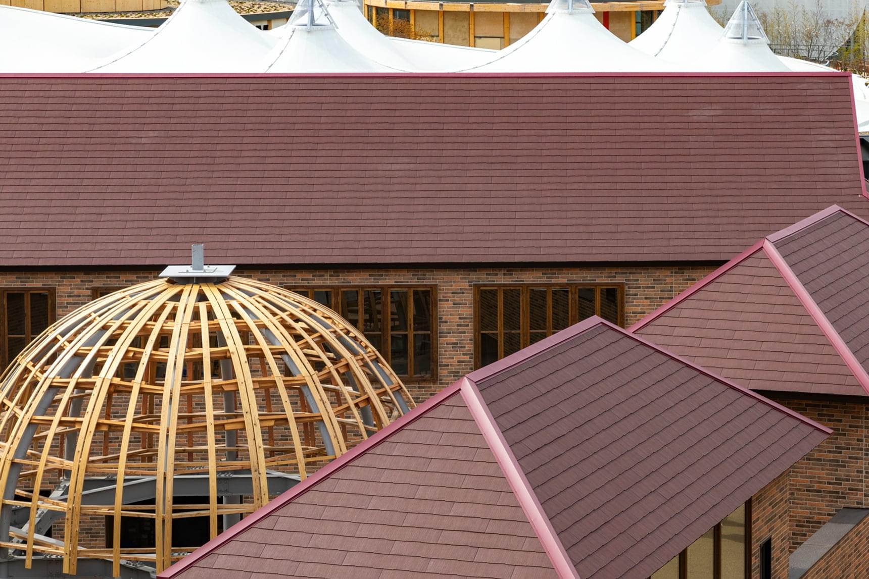 8. 伝統的な建築様式のネパール館の屋根に採用されているのが「コロニアルグラッサ/グラッサ・ボルドーレッド」。横一文字葺きで、和洋を問わずさまざまなスタイルに似合う