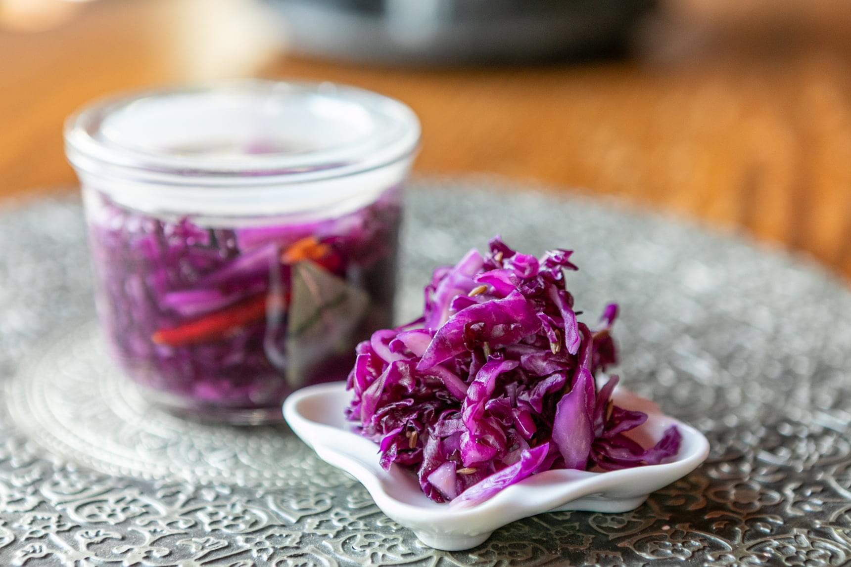キャベツ+塩のオーソドックスな組み合わせに、好みのスパイスを足すだけ。乳酸発酵によるさわやかな風味とスパイスの味わいを楽しむ手軽な一品です。常備菜や付け合わせとしてはもちろん、料理の具材にしても。今回は色鮮やかな紫キャベツを使いましたが、通常のグリーンキャベツでもOKです。
