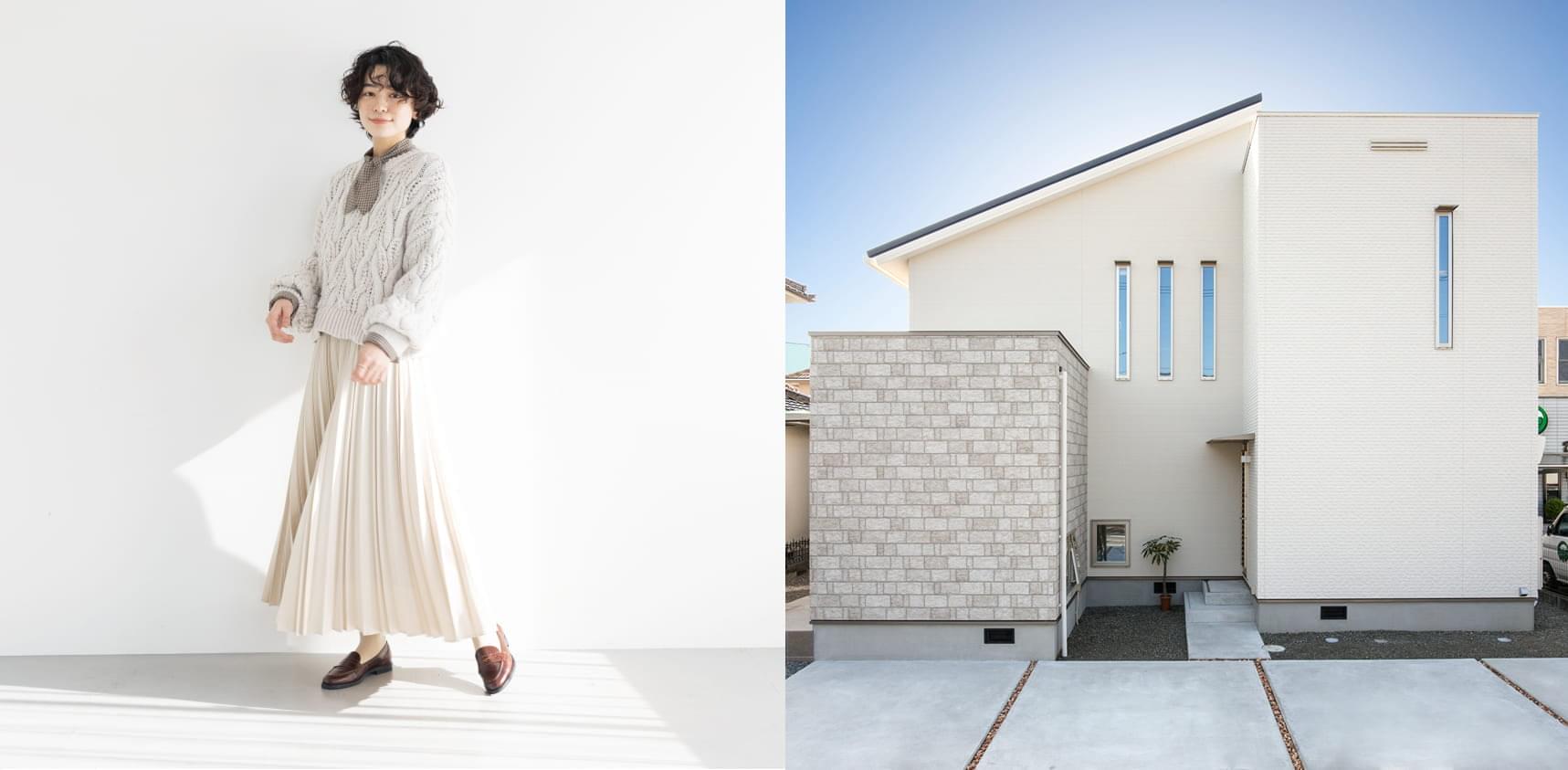 住まいを洋服のようにもっと自由に楽しめたら。ファッションと家の外観に共通するコーディネートをスタイリストの植村美智子さんに教えてもらいました。第1回目は、定番カラーでありながら奥の深い「ホワイト」。素材の質感やニュアンスの違いを重ねることで生まれる洗練されたコーディネートをお届けします。