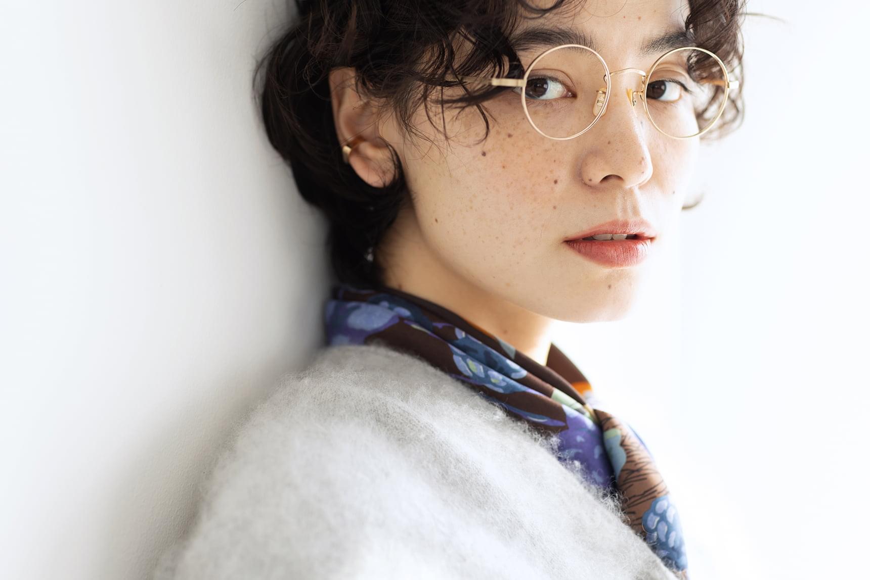ブラウンのスカーフを取り入れた、軽やかなエレガントスタイル。カシミアの上質な起毛感がつくる繊細な陰影が、心地よい温もりを感じさせます。華奢なメタルフレームのメガネを合わせて、品よく、知的な印象に。