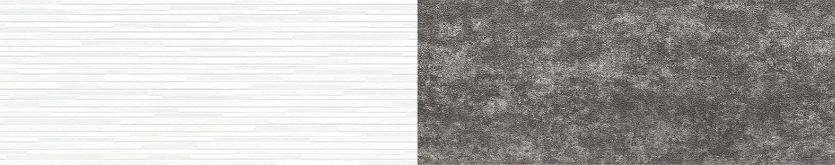 繊細なへら仕上げ風の「スマッシュライン15」に使い込まれた鉄の質感を表現した「フィエルテ(アイロン)」の組み合わせ。上品なホワイトと、インダストリアルなアイアングレー。相反する要素が互いを引き立て合い、クラシカルな中にスパイスが効いた、奥行きのある外観をつくります。